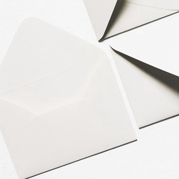 Maak de rouwkaarten compleet met een bijpassende envelop en op maat gemaakte rouwzegel. Zo creëren we een passend geheel.